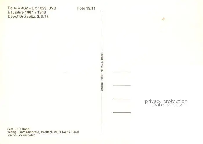 Strassenbahn Be 4/4 462 Depot Dreispitz Basel postalisch nicht gelaufen 1978 Erhaltung siehe scans [PaolaD17] PaolPID1