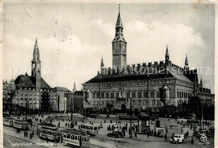 Strassenbahn Kobenhavn Raadhuspladsen postalisch gelaufen 1933 Erhaltung siehe scans [PaolaD17] PaolPID1