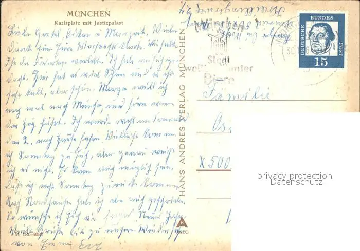 Strassenbahn Muenchen Karlsplatz Justizpalast Strassenbahn postalisch gelaufen 1921-1965 Erhaltung siehe scans Alte Ansichtskarte Postkarte PaolPID1