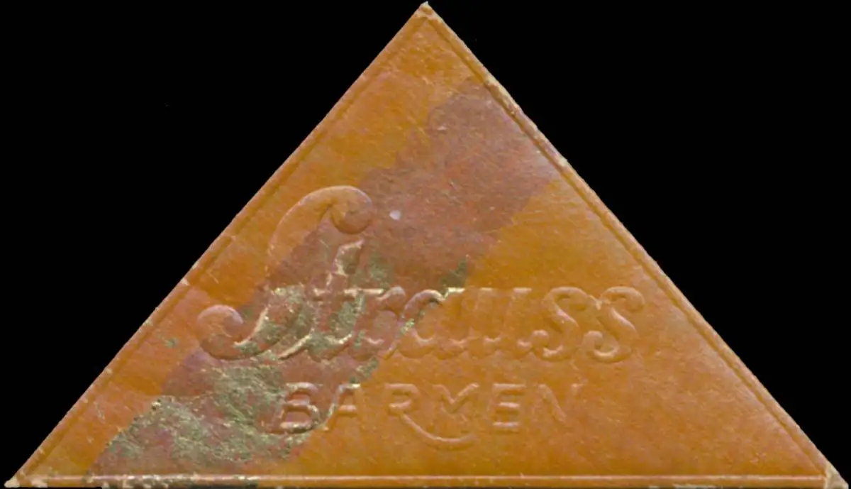 Wuppertal, Etikett, Größe/Zustand: 3x5 , beschädigt, Original alte Reklamemarke die seinerzeit für die Werbung benutzt wurde