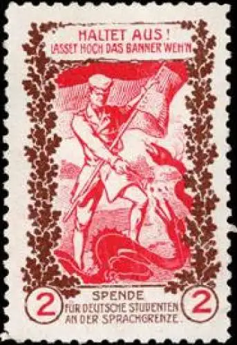 Lasset hoch das Banner wehn. Spende für deutsche Studenten an der Sprachgrenze, rot, braun, Größe/Zustand: 4x3 , guter Zustand, Original alte Reklamemarke die seinerzeit für die Werbung benutzt wurde