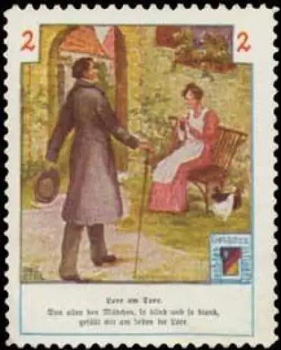 Lore am Tore, Größe/Zustand: 4x4 , guter Zustand, Original alte Reklamemarke die seinerzeit für die Werbung benutzt wurde