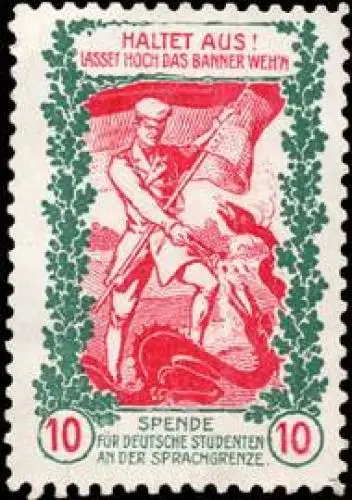 Lasset hoch das Banner wehn. Spende für deutsche Studenten an der Sprachgrenze, rot, grün, Größe/Zustand: 4x3 , guter Zustand, Original alte Reklamemarke die seinerzeit für die Werbung benutzt wurde