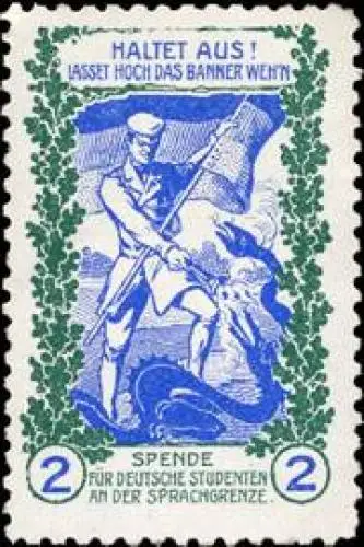 Lasset hoch das Banner wehn. Spende für deutsche Studenten an der Sprachgrenze, blau, grün, Größe/Zustand: 4x3 , guter Zustand, Original alte Reklamemarke die seinerzeit für die Werbung benutzt wurde