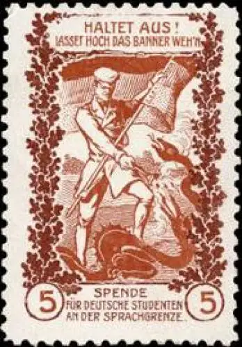 Lasset hoch das Banner wehn. Spende für deutsche Studenten an der Sprachgrenze, hellbraun, braun, Größe/Zustand: 4x3 , guter Zustand, Original alte Reklamemarke die seinerzeit für die Werbung benutzt wurde