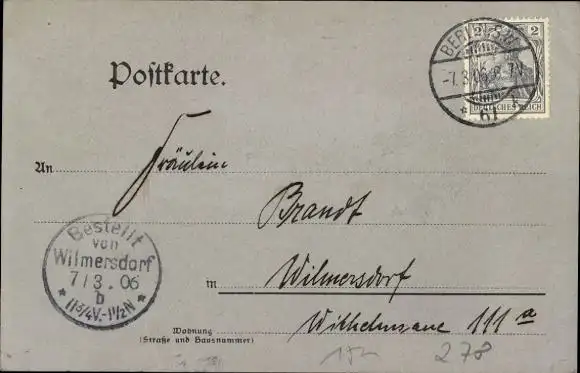 Zustand siehe Scan, gelaufen, 1906 - ca 5 cm X 3 cm