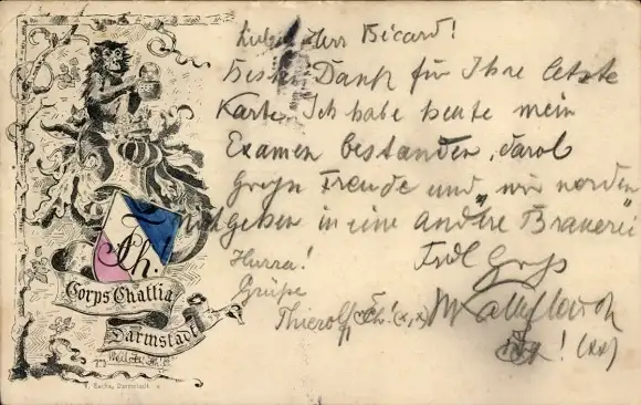 Studentika Ak Darmstadt in Hessen, Wappen eines studentischen Vereins, Corps Chattia