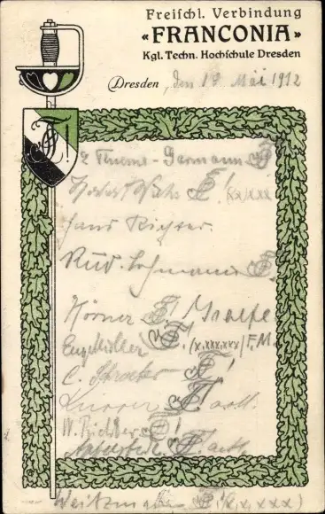 Studentika Ak Dresden Zentrum Altstadt, Freischlagende Verbindung Franconia, Technische Hochschule