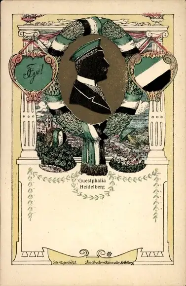 Studentika Ak Heidelberg, Corps Guestphalia, Schattenbild eines Studenten, Wappen, KSCV