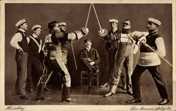 Studentika Ak Heidelberg am Neckar, Mensur, Studenten beim Fechten
