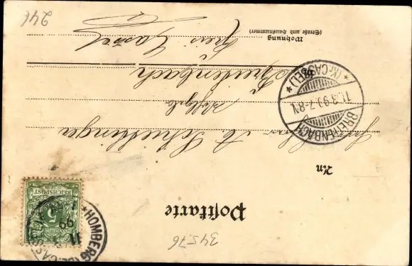 Zustand, siehe Scan, gelaufen, 1899 - ca 9 cm X 14 cm