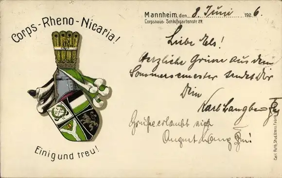 Studentika Ak Mannheim, Corps Rheno Nicaria, Wappen, RSC Rudolstädter Senioren Convent