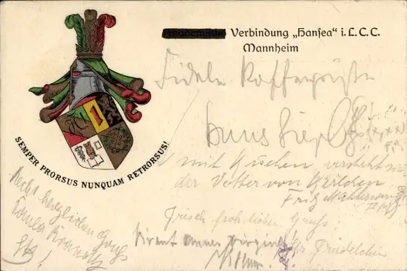 Studentika Ak Mannheim, Verbindung Hansea i. L. C. C., Wappen, RSC
