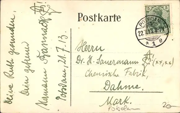 Zustand, siehe Scan, gelaufen, 1913 - ca 14 cm X 9 cm