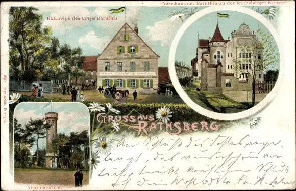 Studentika Ak Rathsberg Marloffstein in Mittelfranken Bayern, Corpshaus der Baruthia, Aussichtsturm