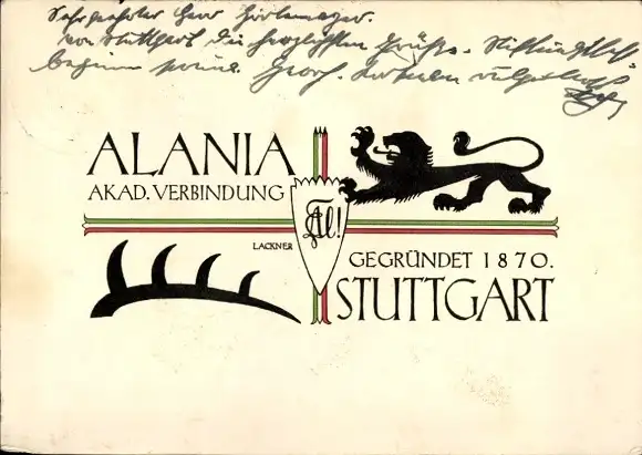 Studentika Ak Stuttgart, Akad. Verbindung Alania, gegr. 1870, Wächterstraße 11