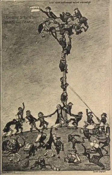 Studentika Ak Unsrer Schüler Kampf ums Dasein, Wer oben ankommt wird versetzt