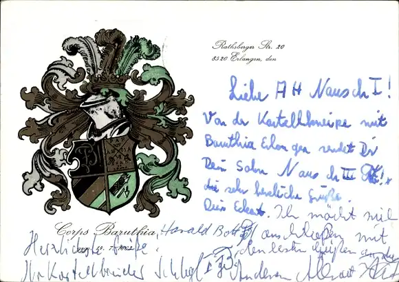 Studentika Ak Wappen eines studentischen Vereins, Degen, Ritterhelm