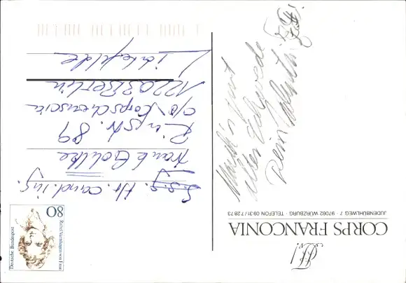 Studentika Ak Würzburg, Corps Franconia, Judenbühlweg 7, Corpsfarben