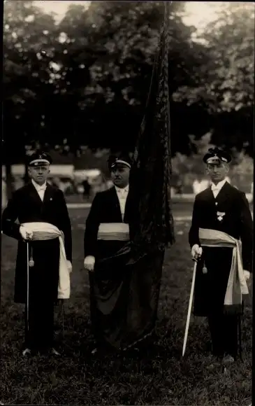 Studentika Foto Ak Männer in Uniformen, Standarte, Studenten