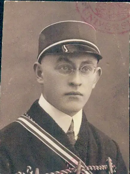 Studentika Foto Ak Portrait eines Studenten in Uniform, Mütze, Brille
