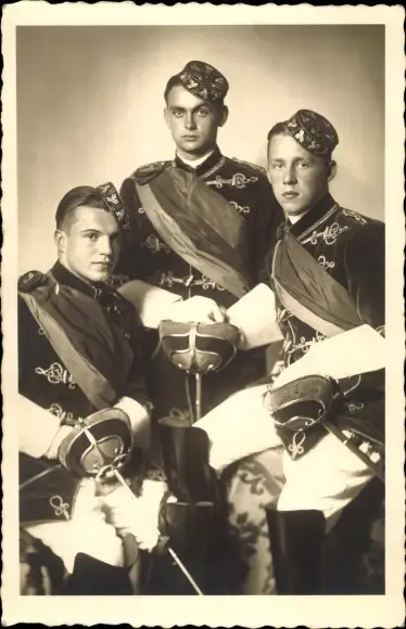 Studentika Foto Ak Studenten in Uniformen, Degen