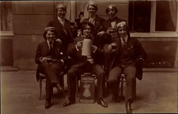 Studentika Foto Ak Studentinnen, Gruppenbild, Bierkrug