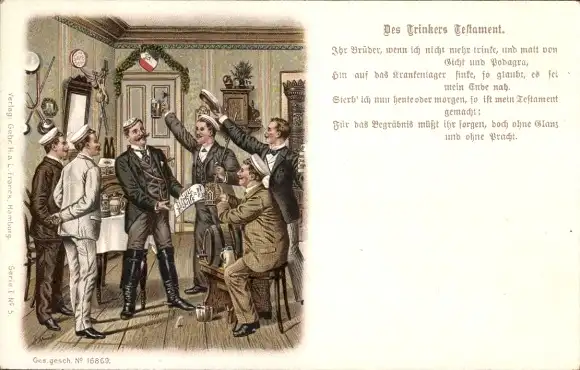 Studentika Künstler Ak Arnould, G., Des Trinkers Testament
