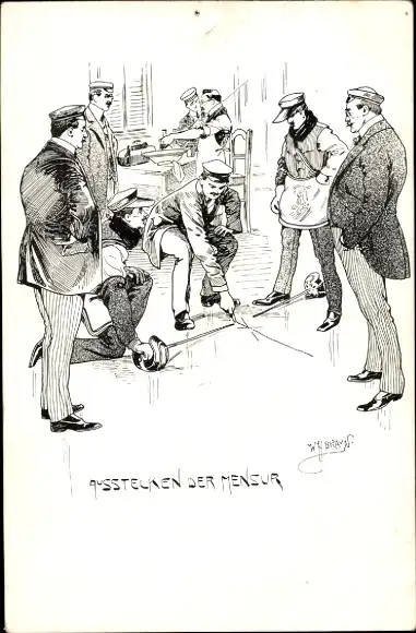 Studentika Künstler Ak Braun, Studenten, Mensur
