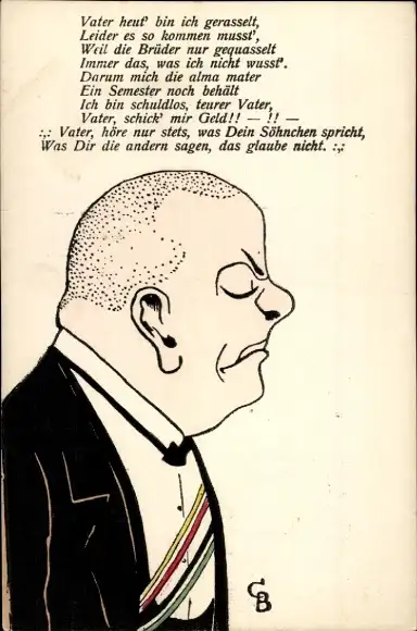 Studentika Künstler Ak Karikatur, Student, Vater heut bin ich gerasselt