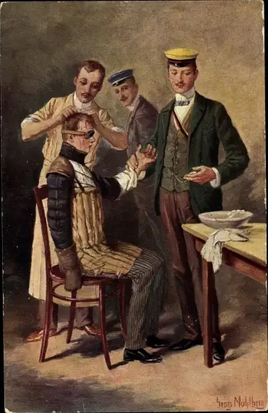 Studentika Künstler Ak Mühlberg, Georg, Abfuhr nach der Mensur
