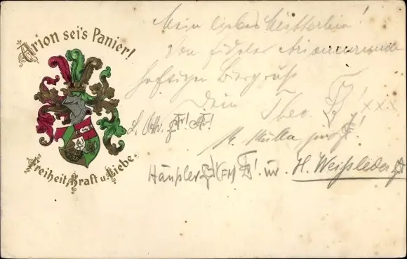 Studentika Litho Wappen eines Studentenvereins, Arion sei's Panier