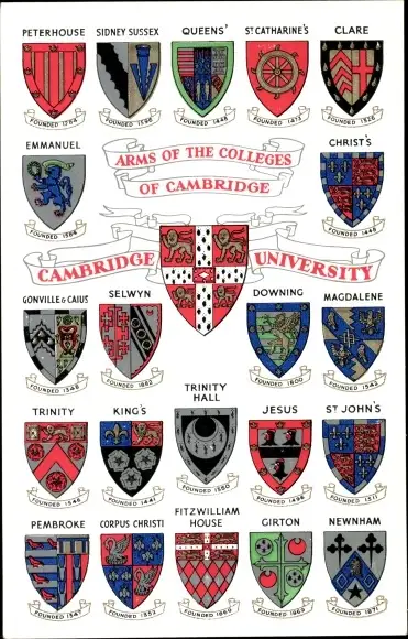 Studentika Wappen Ak Cambridge England, Cambridge University, Arms of the Colleges