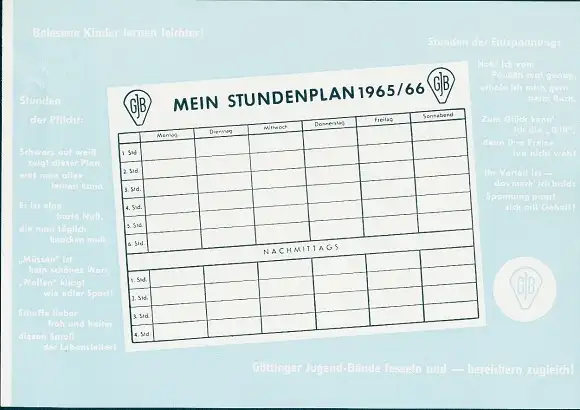Stundenplan 1965/66, Göttinger Jugendbücher