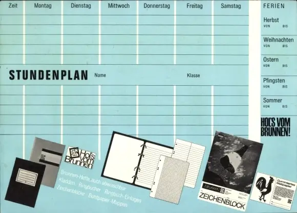 Stundenplan Brunnen Zeichenblock, Propeller-Turbinen-Flugzeug Nord 262 um 1970