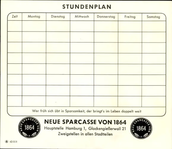 Stundenplan Neue Sparkasse Hamburg Glockengießerwall , Pilze Steinpilz Rotkappe um 1960