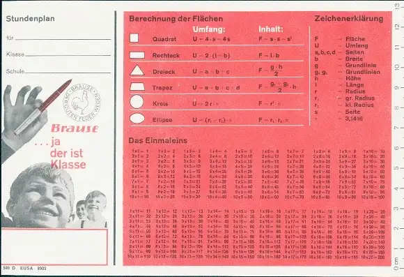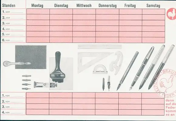 Stundenplan Reklame Brause, Schreibfedern, Füllfederhalter