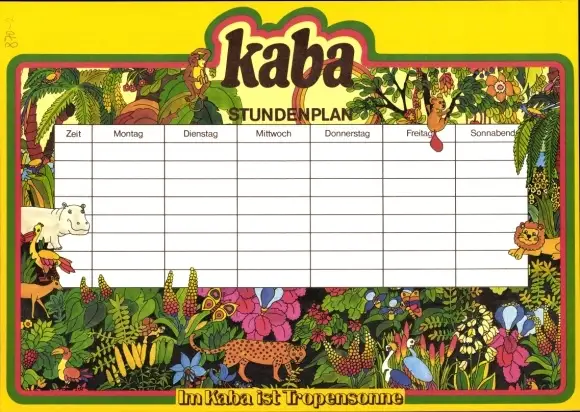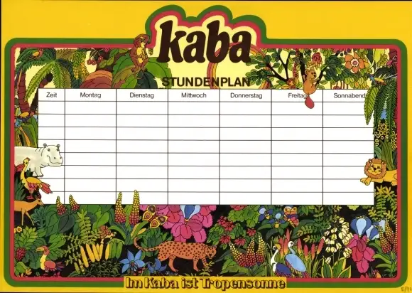 Stundenplan Relame KABA Kakao, Urwald mit Wildtieren, Im Kaba ist Tropensonne um 1970