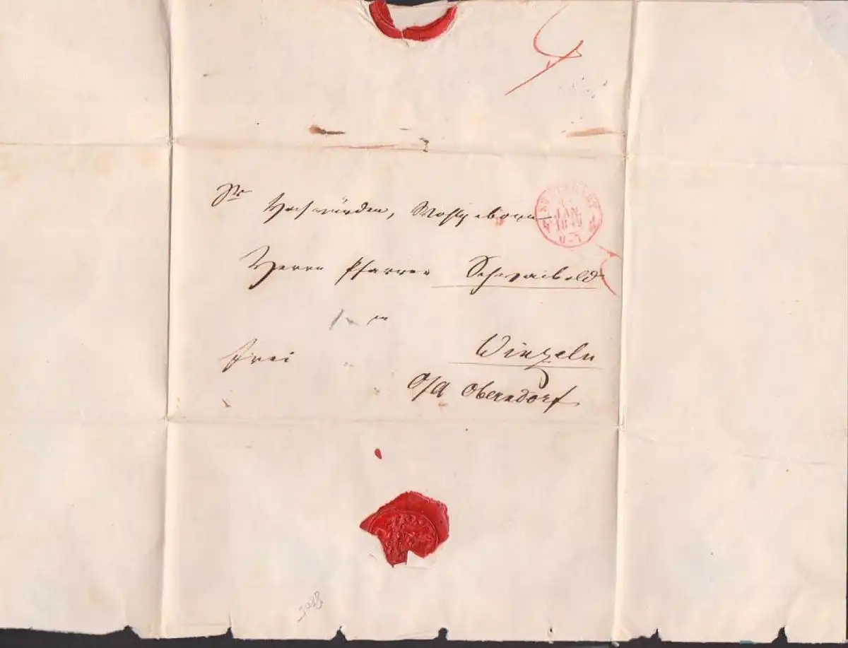 Stuttgart Altbrief mit Text, roter K1 22. JAN. 1849