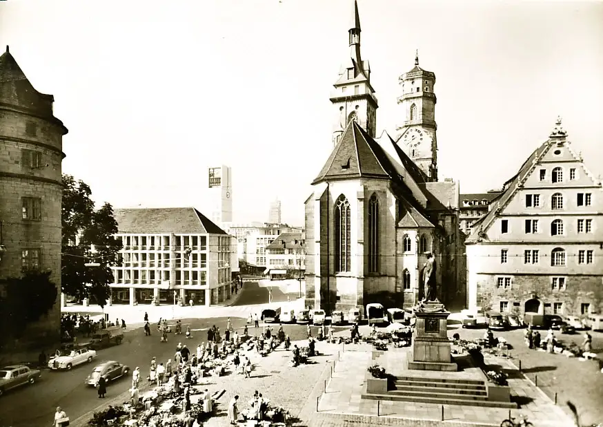 Stuttgart Schillerplatz mit Stiftskirche ngl 110.158