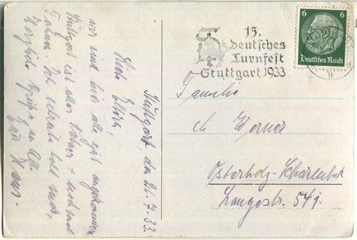 Stuttgart - Turnfest 1933 - leichte Gebrauchsspuren (G12502) gel. 1933