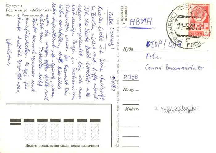 Suchumi Hotel Abhasia Suchumi postalisch gelaufen nach 1965 Erhaltung siehe scans [DarjaD84] DarjID84
