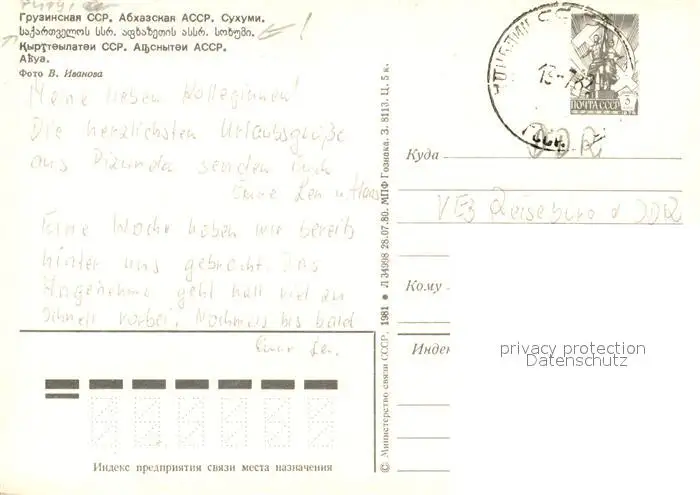 Suchumi Strand Suchumi postalisch gelaufen nach 1965 Erhaltung siehe scans [IrynaD87] Iryn PID