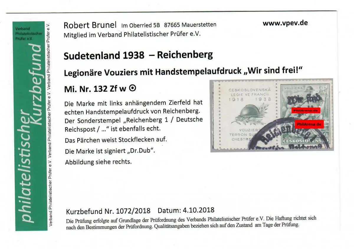 Sudetenland MiNr. 132 Zf w, gestempelt, Sonderstempel Reichenberg