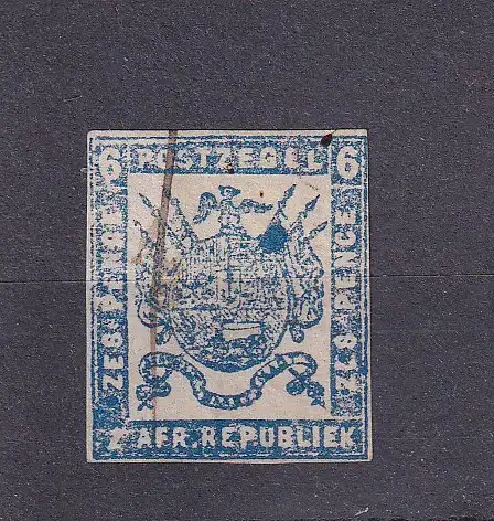 TRANSVAAL 1870 Wappen 6d ZES PENCE/ Mi 2IIB CV 110€/ Tintenstrichentwertung