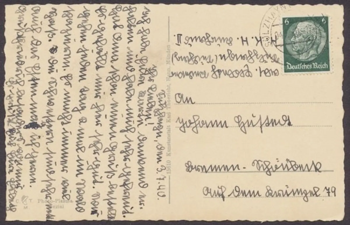 1940 gelaufen, Ecken bestoßen, leicht fleckig, Stempel vorderseitig durchscheinend