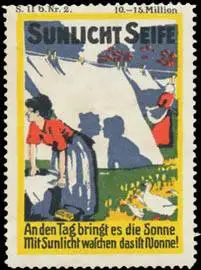 An den Tag bringt es die Sonne. Mit Sunlicht waschen das ist Wonne!, Größe/Zustand: 5x4 , guter Zustand, Original alte Reklamemarke die seinerzeit für die Werbung benutzt wurde
