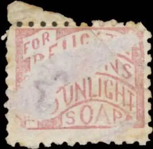 Werbung auf der Rückseite einer 1 Penny-Briefmarke aus Neuseeland, Kapselgeld, Briefmarkenkapselgeld, Größe/Zustand: 2x3 , beschädigt, Original alte Reklamemarke die seinerzeit für die Werbung benutzt wurde