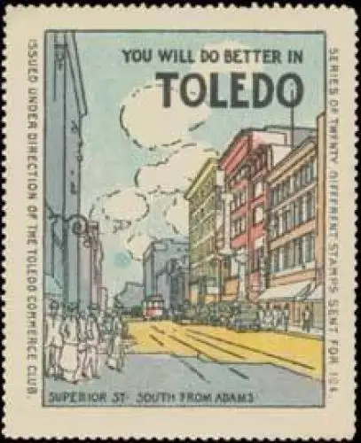 You will do better in Toledo., Größe/Zustand: 6x5 , guter Zustand, Original alte Reklamemarke die seinerzeit für die Werbung benutzt wurde