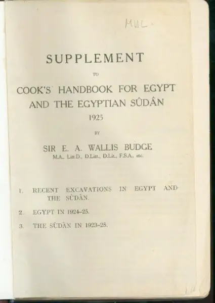 Supplement to Cook´s Handbook for Egypt and the Egyptian Sudan 1925